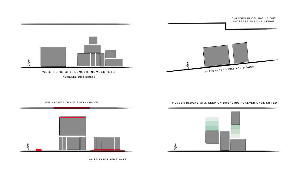 Earlier levels allow the player to clearly test the whole box moving sequence through first, creating a clear route for them to run through, with later levels requiring the level to be manipulated during the run, as the route closes behind the player.